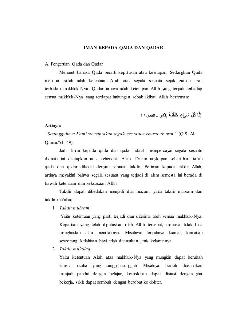 Doc Pengertian Iman Kepada Qada Dan Qadar Boim Mesin