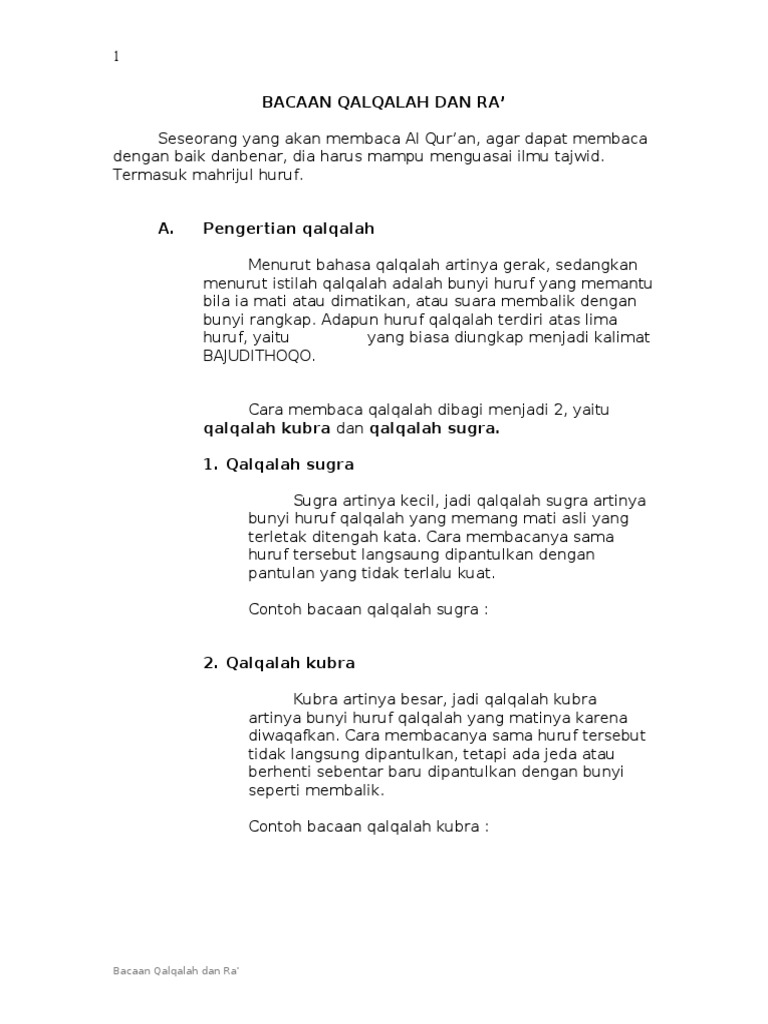 Makalah Agama Bacaan Qalqalah Dan Ra Doc Document